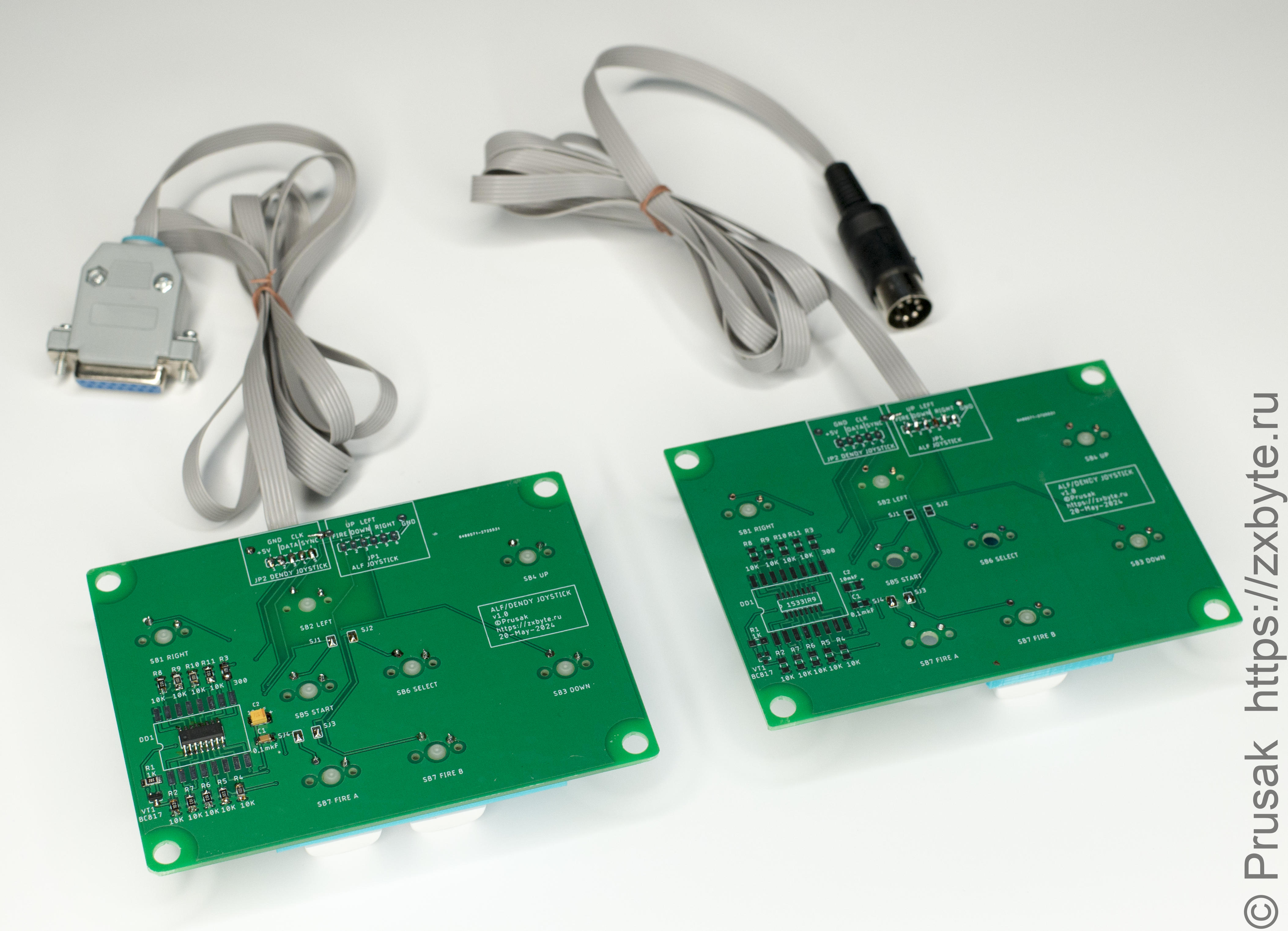 Основой джойстика послужила схема эмуляции джойстика Dendy за авторством С. Рюмик (журнал «Радиолюбитель ваш компьютер» №10, 1996 г.)