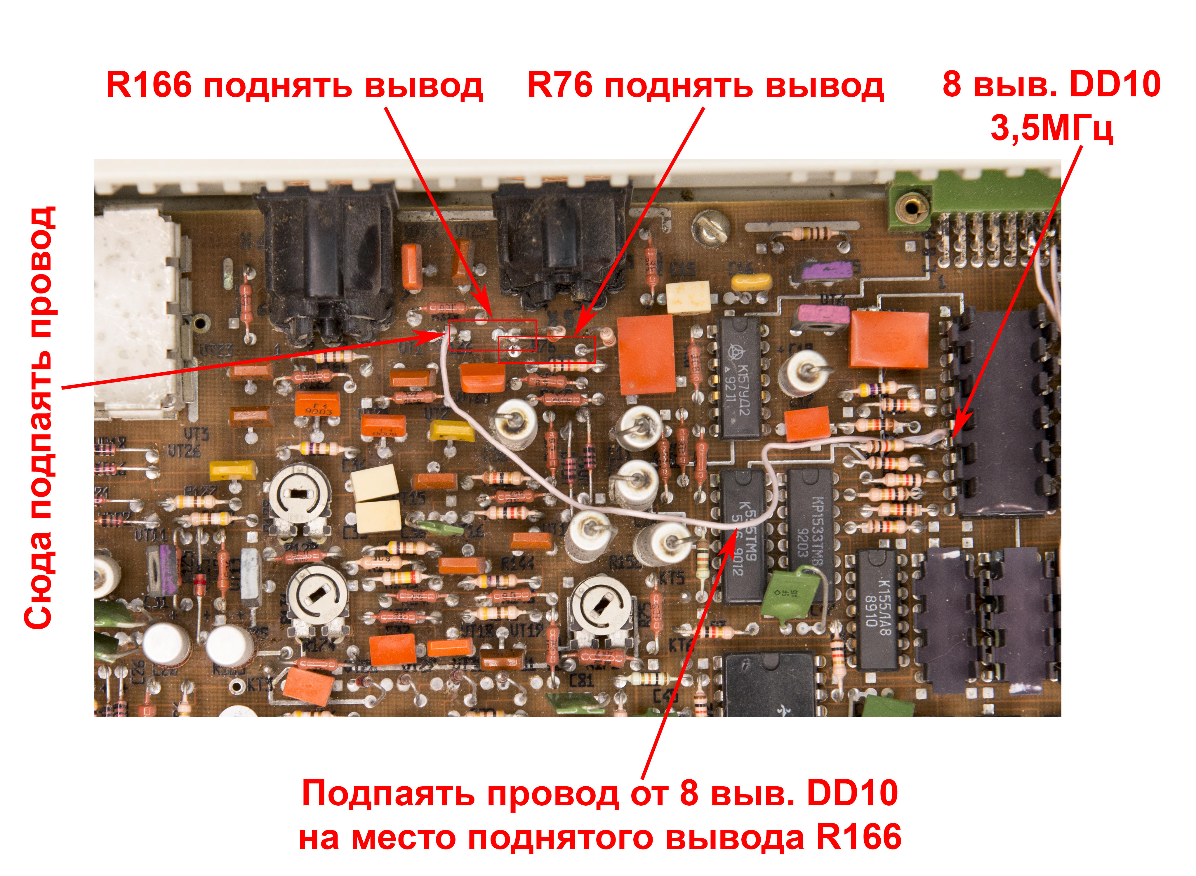 Итак, для конвертера VGA/HDMI нужно как-то подать на видеоадаптер сигнал с частотой 3,5 МГц. Для этого нужно «пожертвовать» одним из сигналов RGB-выхода компьютера. В данной ситуации наиболее «ненужным» сигналом является выход звука. Поэтому доработка «Байта» заключается в том, чтобы убрать сигнал звука с RGB выхода и подать на разъём сигнал 3,5 МГц.