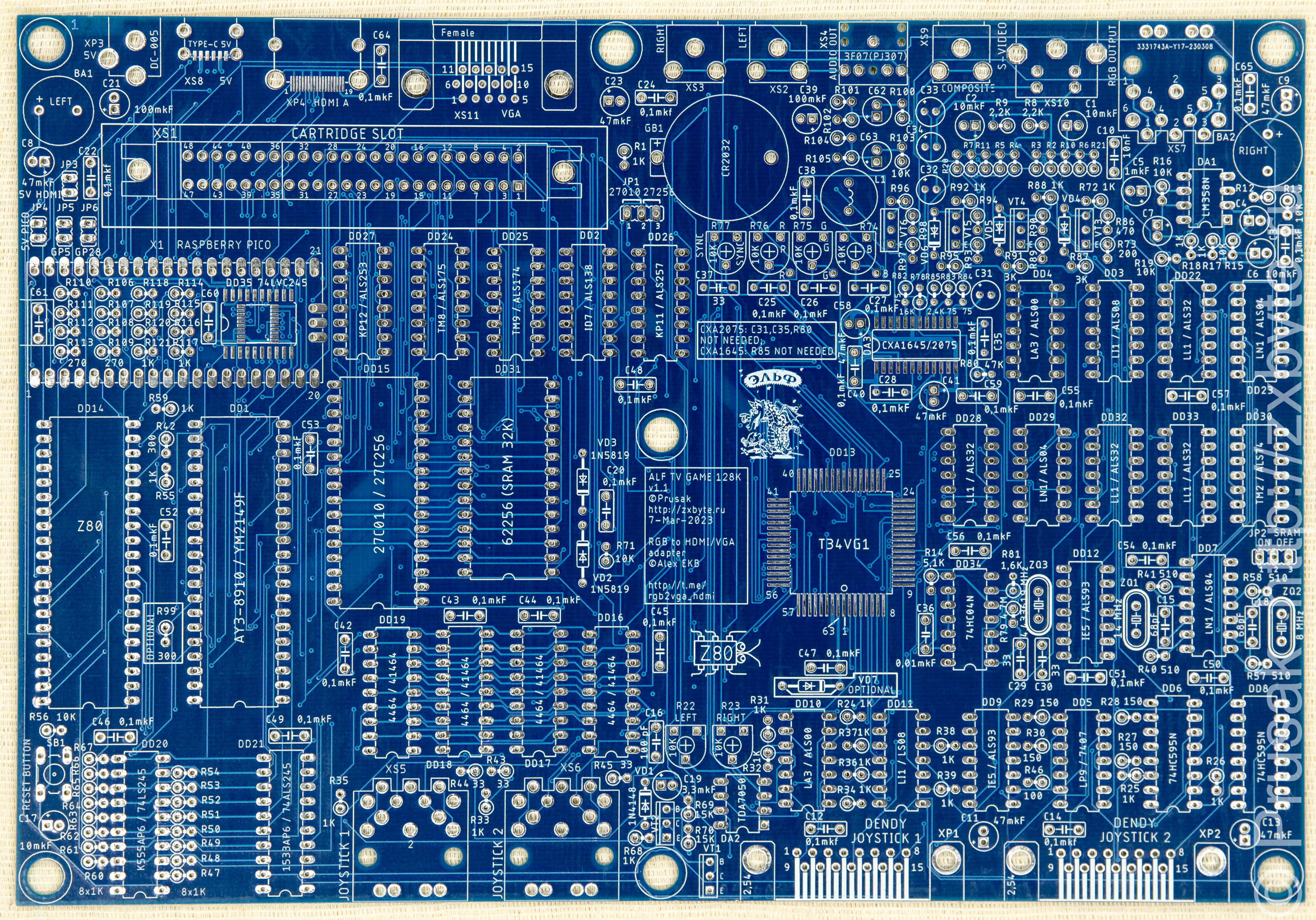 Схема, исходники, плата приставки «Эльф-128 2023 v1.1»В архиве содержится схема приставки «Эльф-128 2023 v1.1», разводка платы, файлы для заказа изготовления платы, прошивки ПЗУ