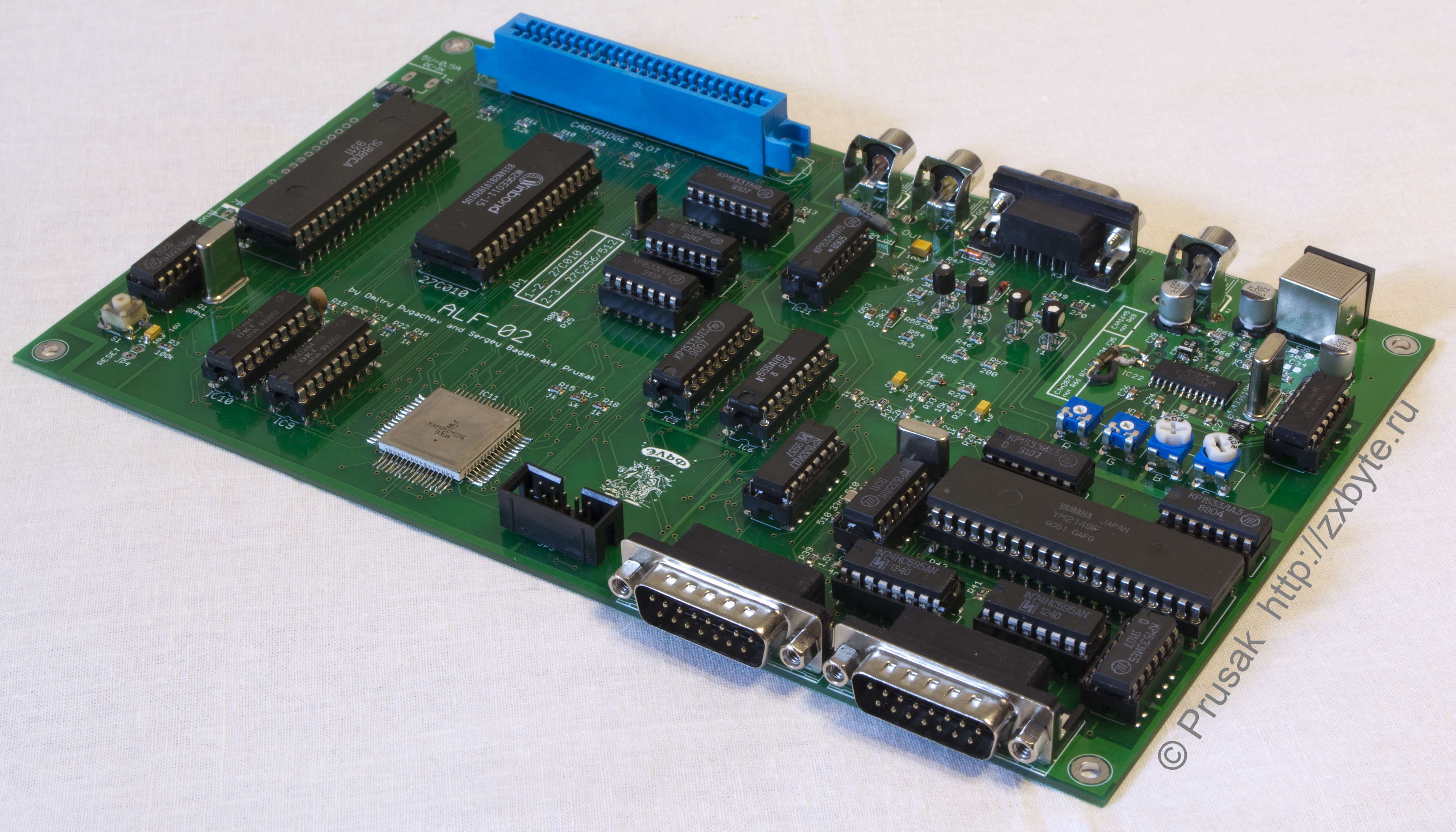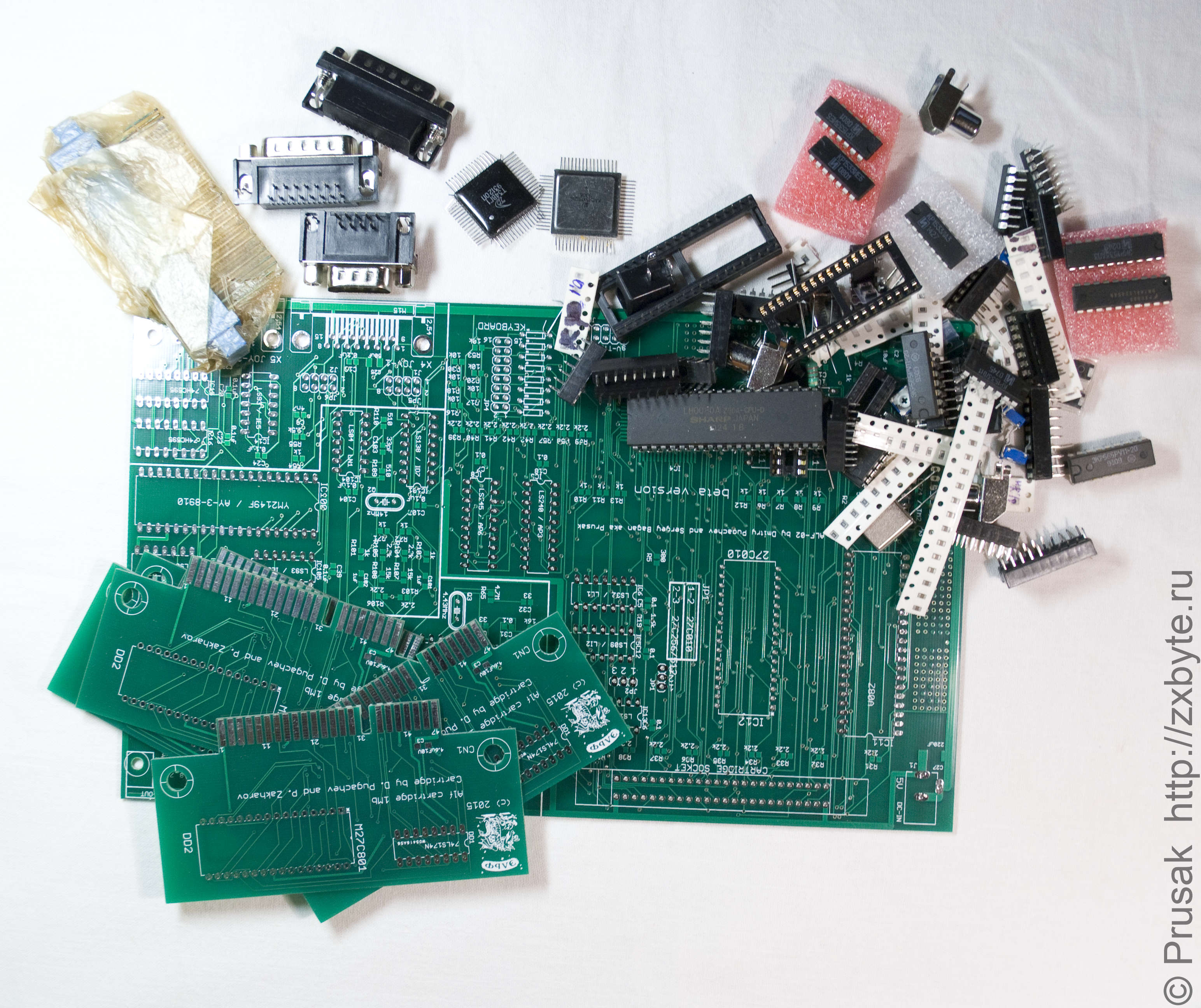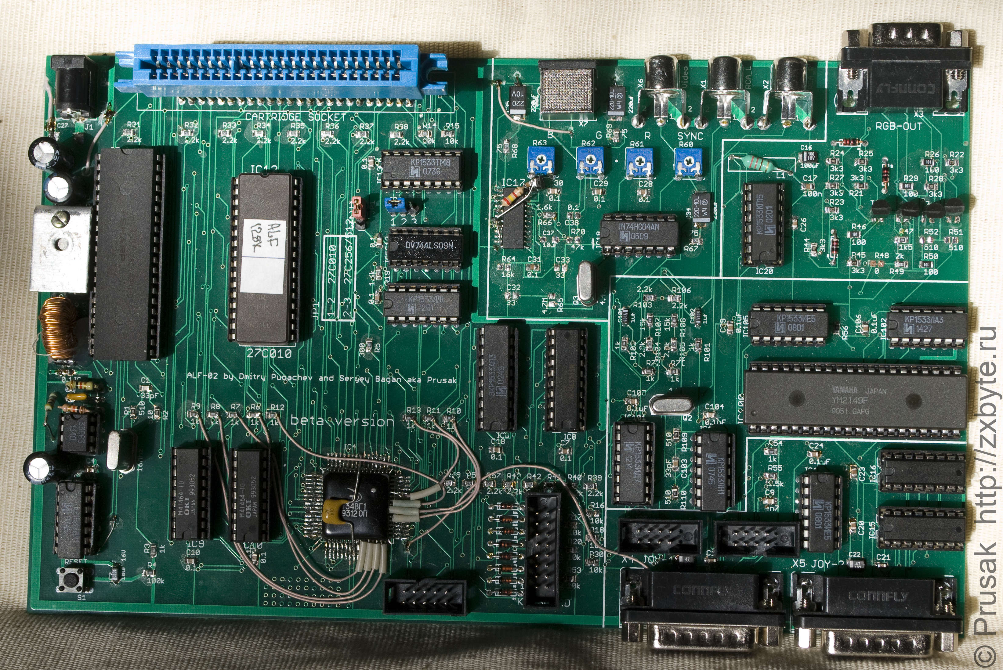 Рекомендации по сборке: ввиду того, что БМК ВГ1 может быть и нерабочая (даже среди новых микросхем встречается брак, микросхема часто горит из-за статики или просто так) имеет смысл сначала впаять на плату только её одну (даже не всеми выводами - подпаять выводы питания, вход RST и вход тактовой частоты) и тактовый генератор на 8 МГц (IC1, Q1, C1, R1, R2). После чего подать питание и проверить наличие на видеовыходе БМК сигналов RGB, синхронизации и выхода тактовой частоты CLK для процессора. Если они присутствуют, и сигнал синхронизации в норме, можно окончательно припаять БМК и паять плату дальше.