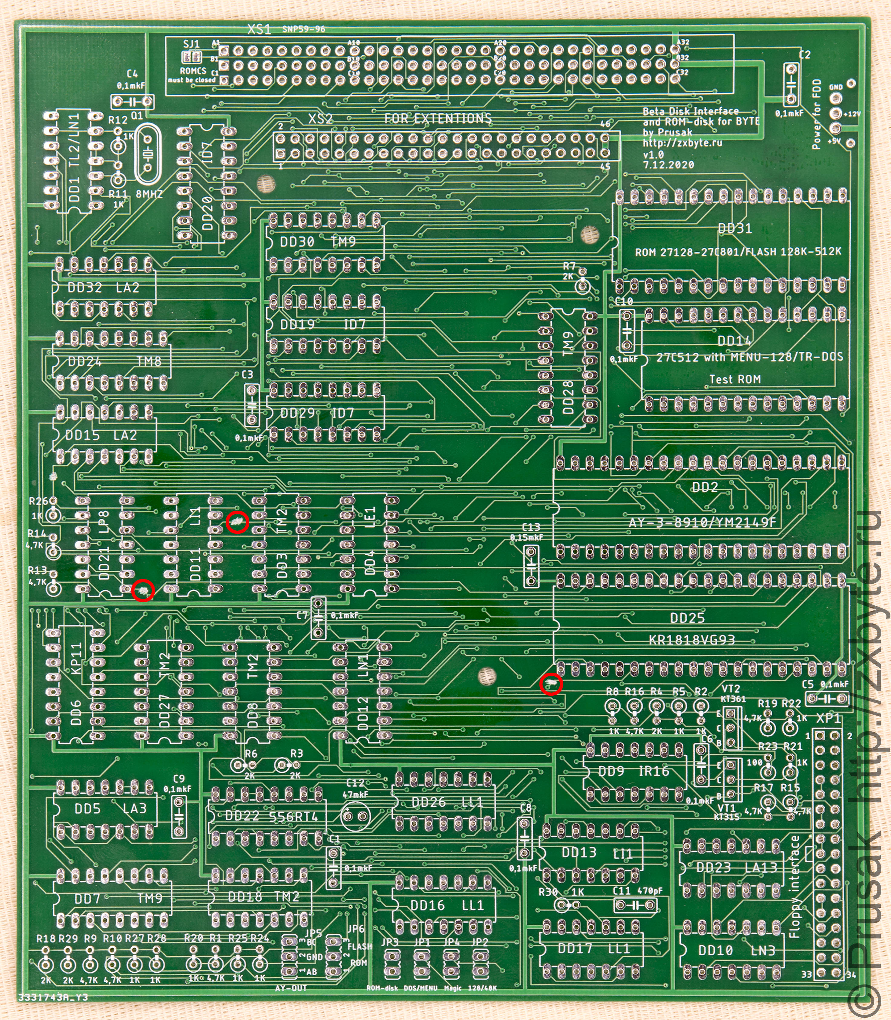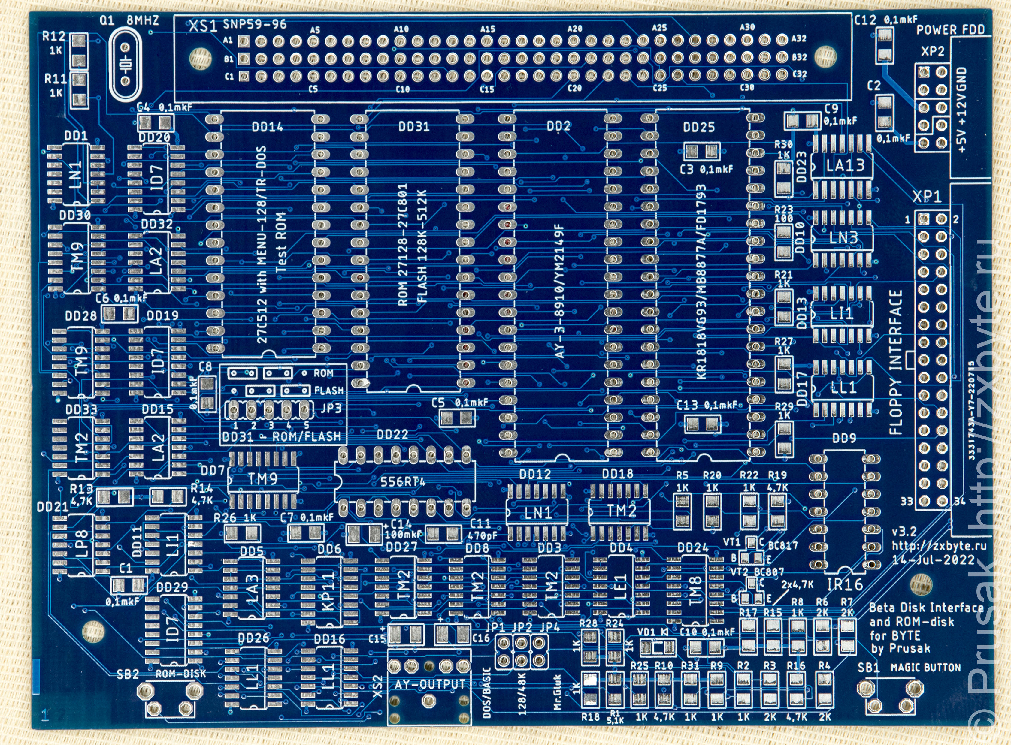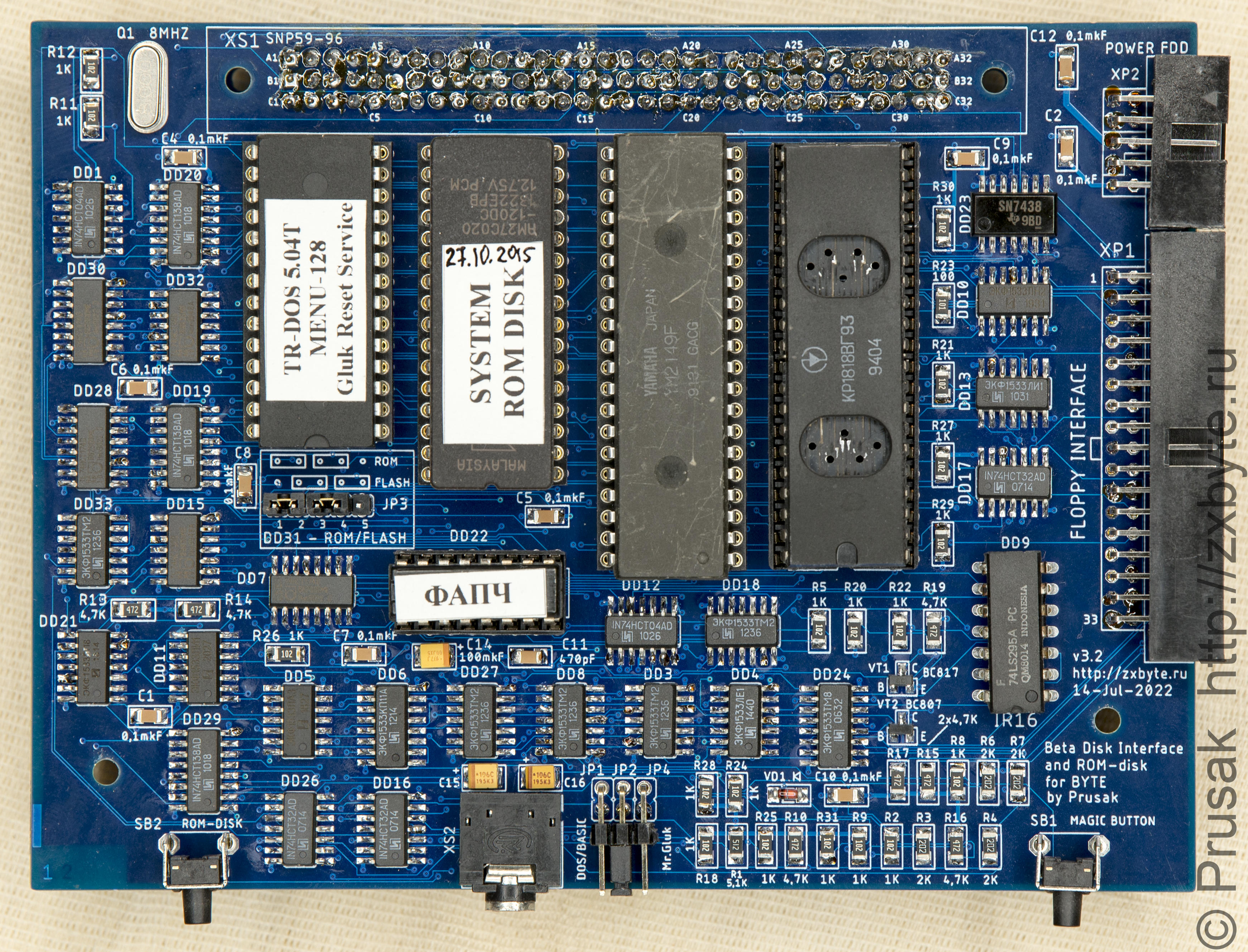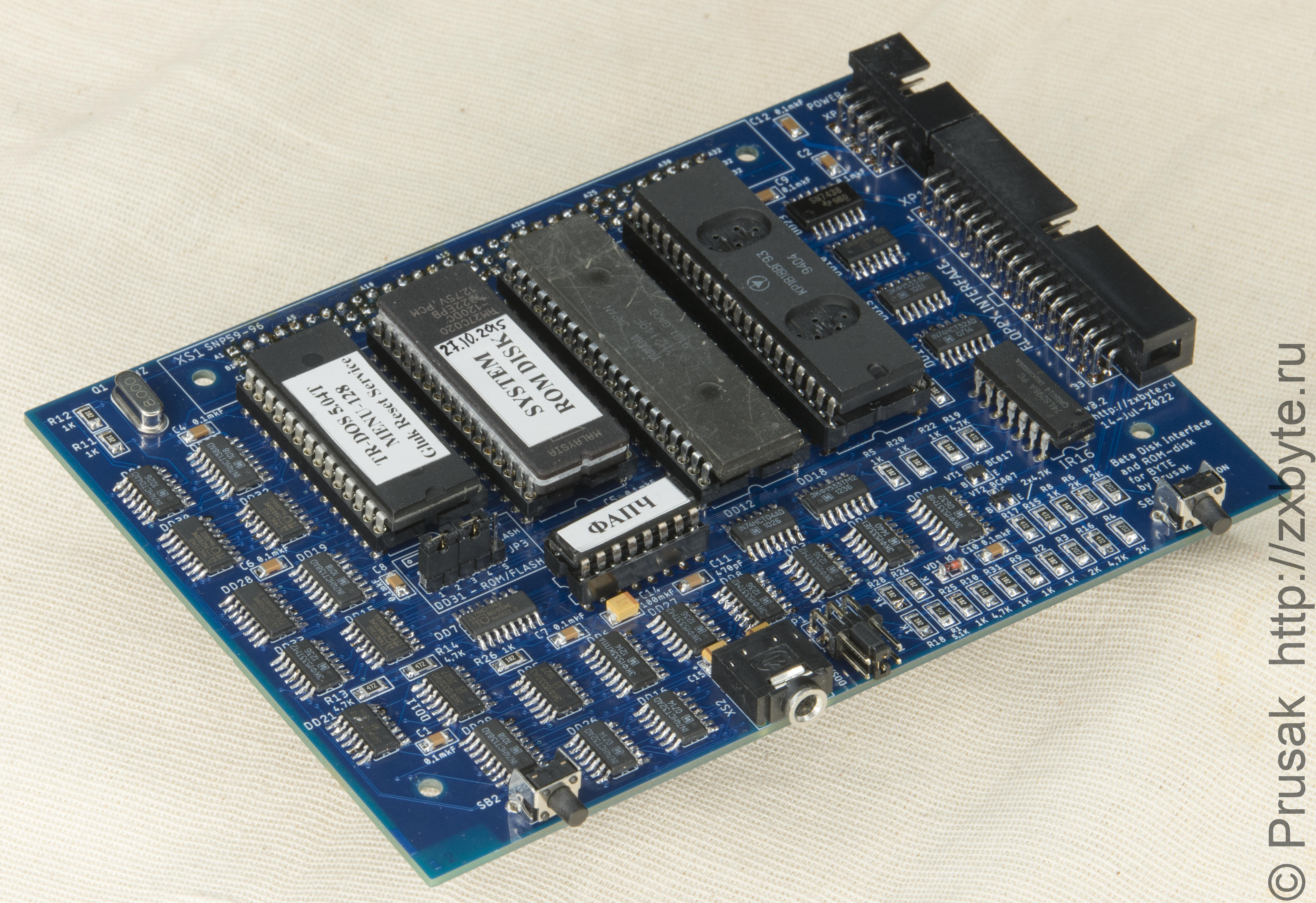 «Оригинальные» контроллеры дисковода к «Байту» на данный момент (да и раньше) купить не так-то просто - их выпущено очень мало по сравнению с общим количеством «Байтов». Поэтому я решил попробовать себя в качестве разработчика периферии для «Байта», и подготовил свой контроллер дисковода под названием BDI Prusak Edition :)
