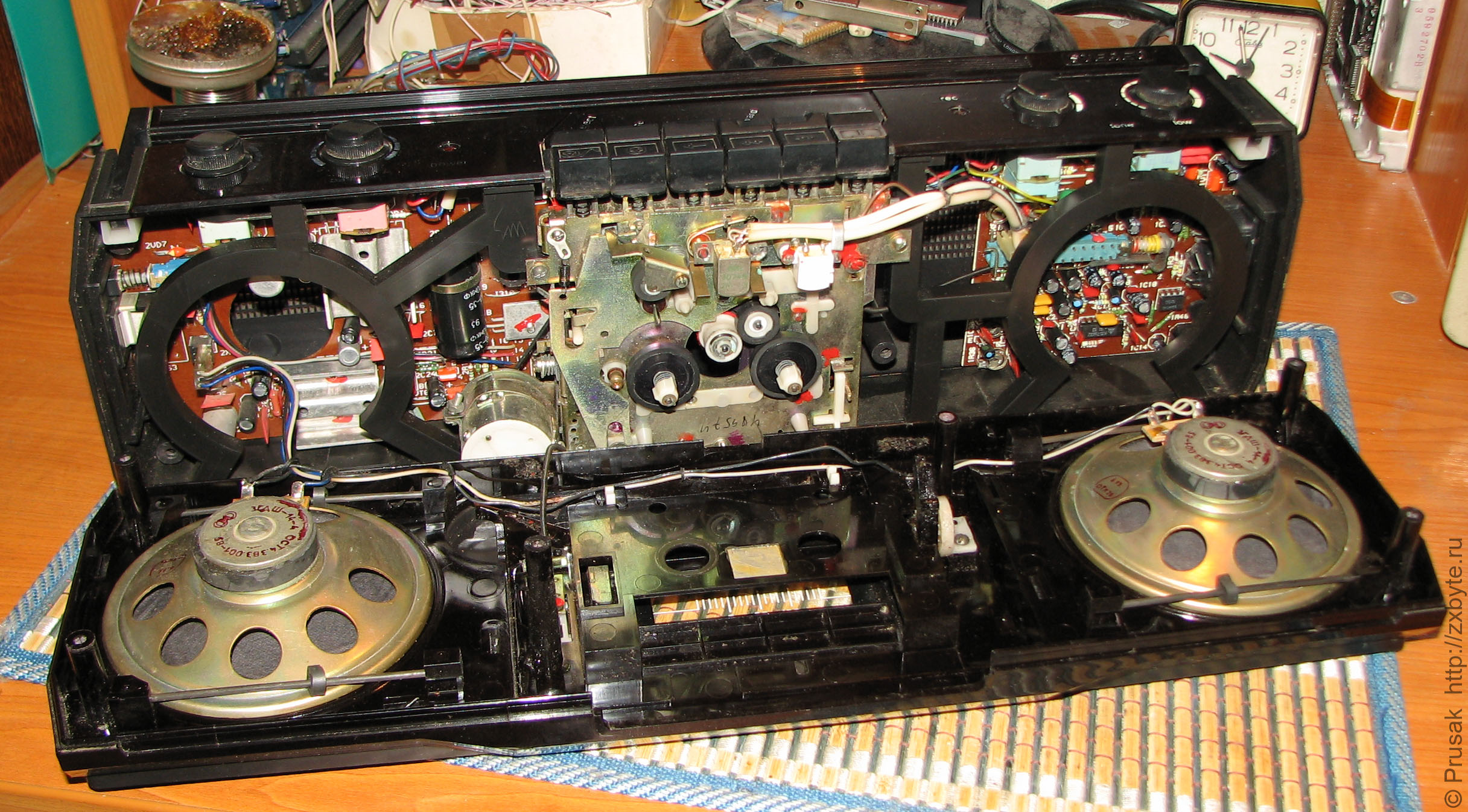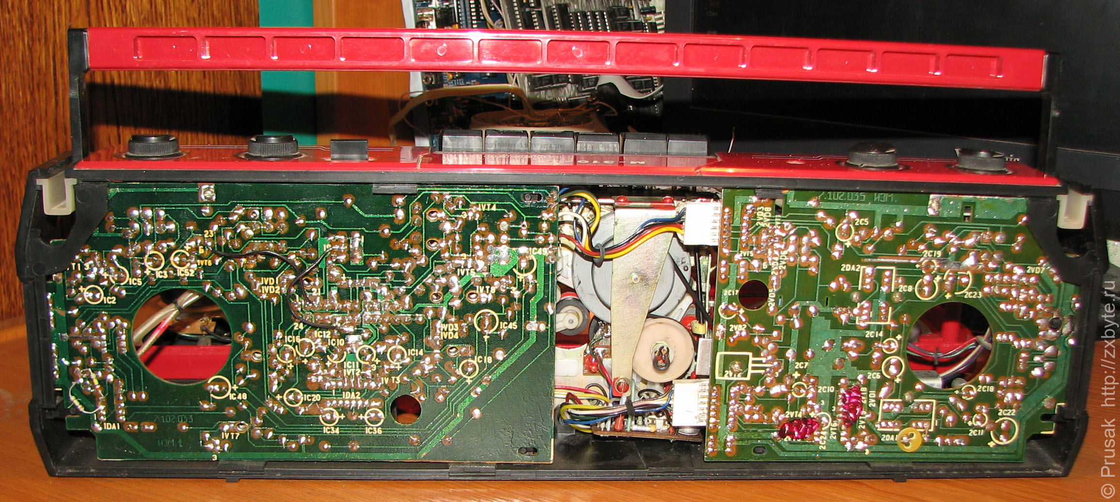 Магнитофон состоит из двух плат - платы предварительного усилителя записи/воспроизведения и плата усилителя мощности для динамиков.