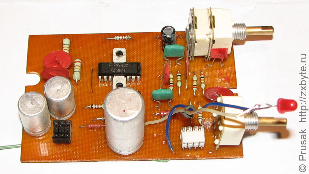 Выходной усилитель собран на микросхеме К174УН20. Выхода на наушники нет.