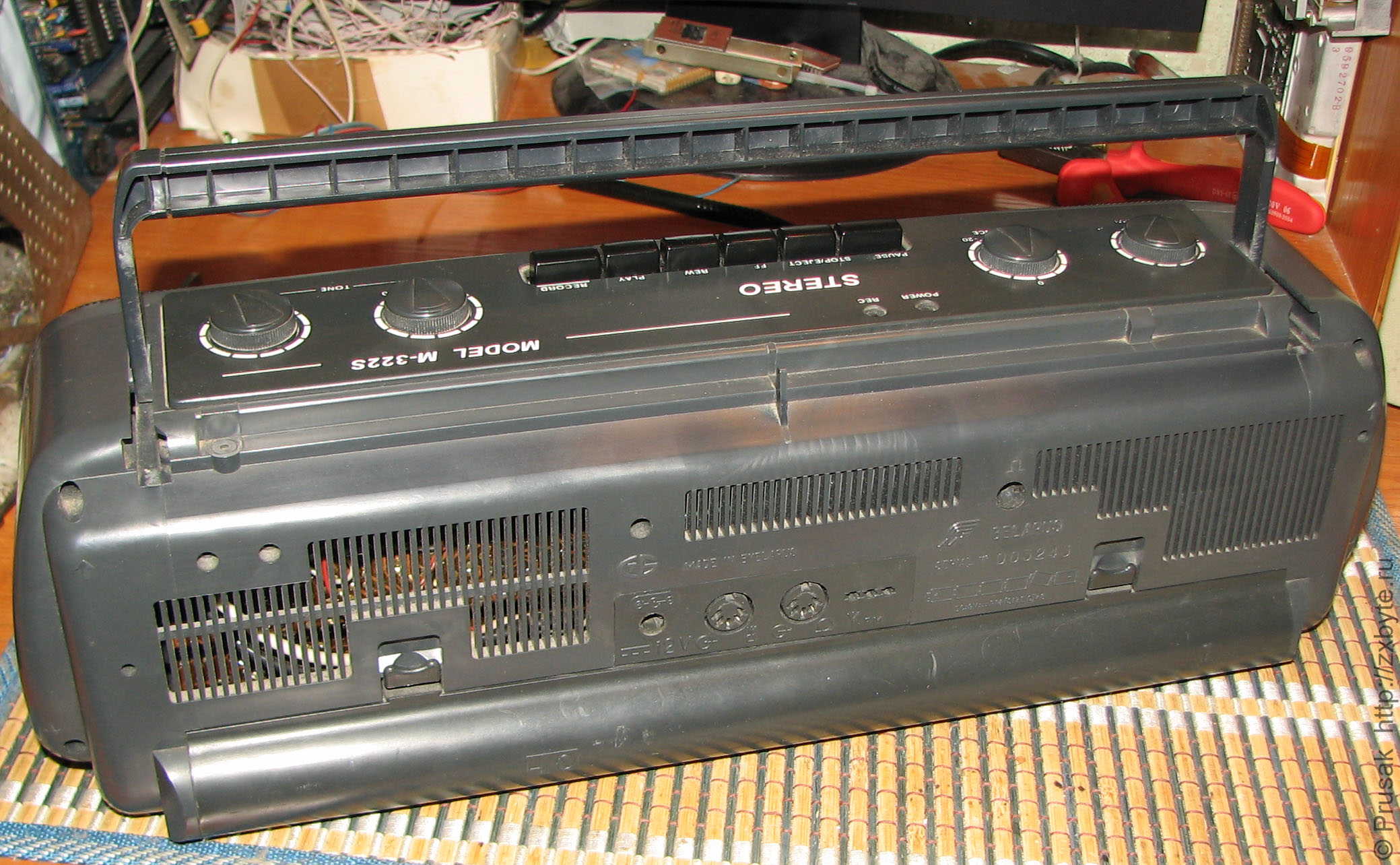 Видно, что корпус магнитофона универсальный - похоже, что в этом же корпусе выпускались и магнитолы, потому что на фотографии выше видны отверстия антенного разъёма, а также в корпусе есть закрытые заглушками отверстия под дополнительные кнопки: