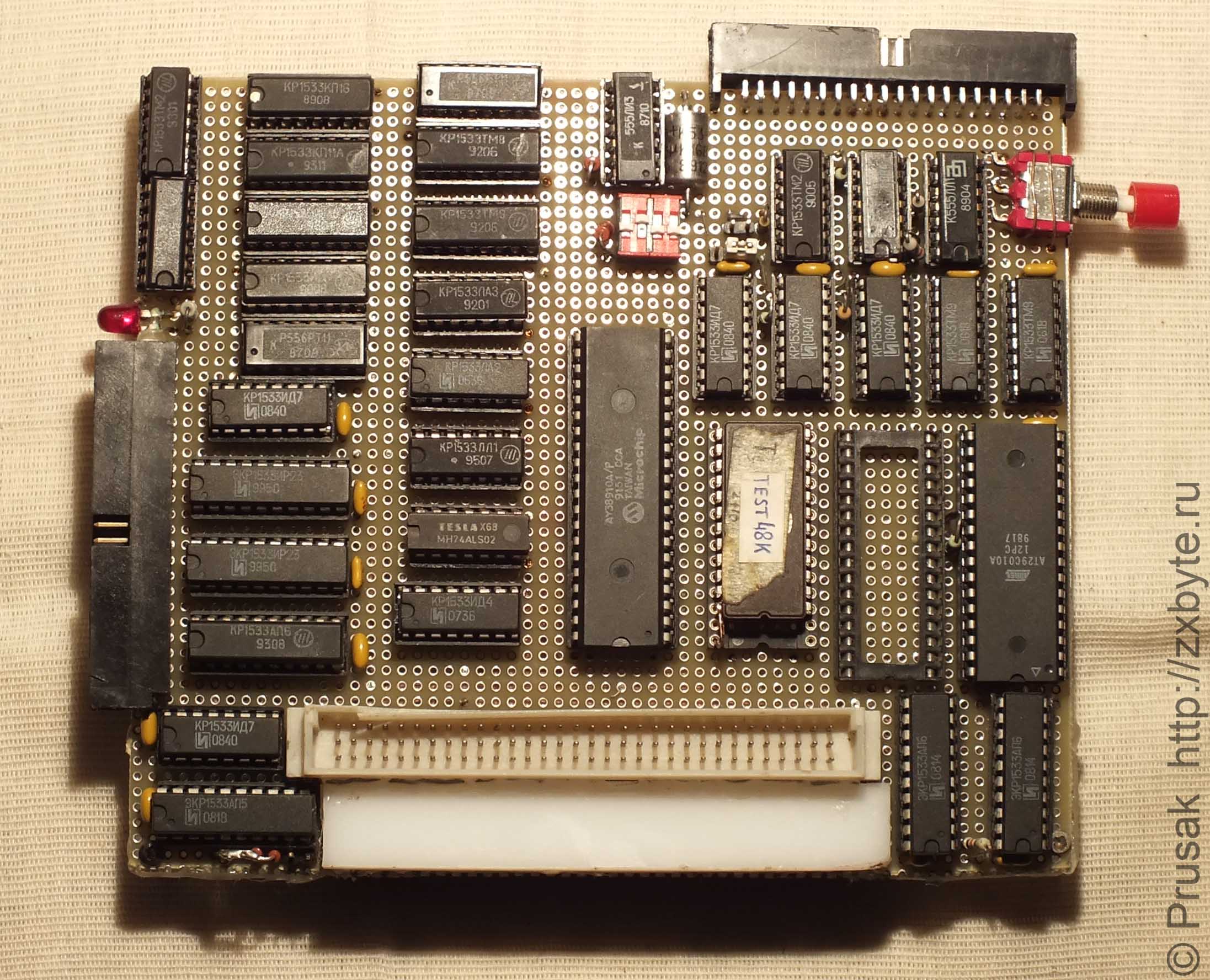 Помимо схемы от ELSSLAND компьютеры «Байт» расширяли до 1МБ в Минске как минимум два человека. Один из таких расширенных «Байтов» есть у меня, но снять с него схему расширения затруднительно ввиду того, что все маркировки с установленных микросхем затёрты: