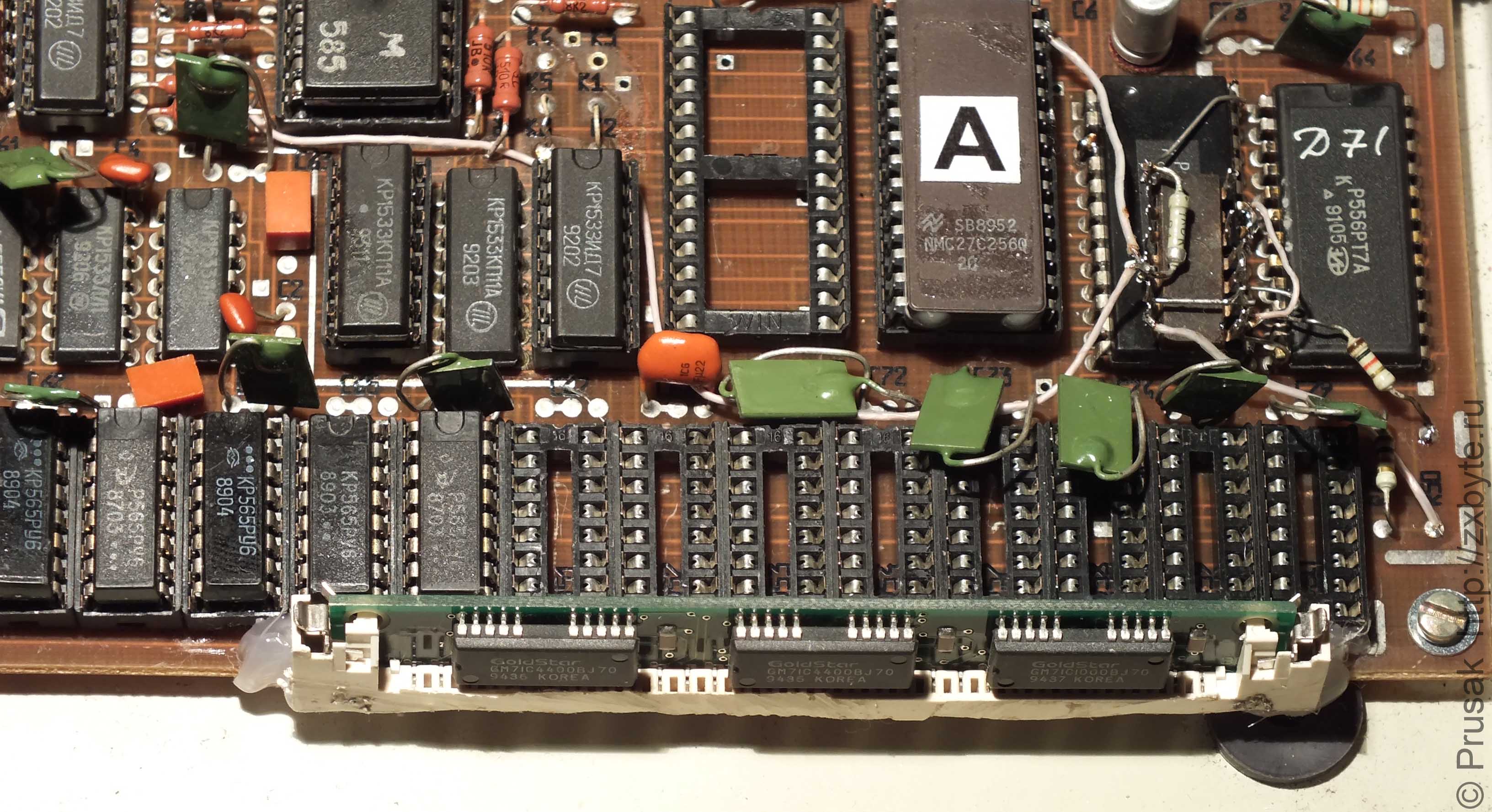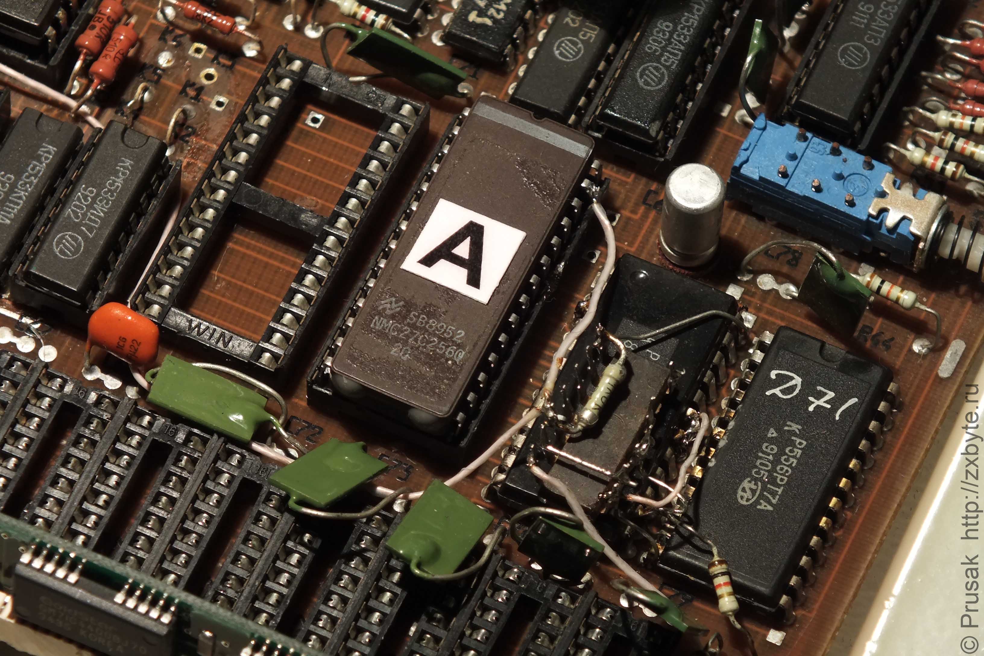 На перевёрнутую вверх ногами микросхему справа от ПЗУ внимание не обращайте, она там лишняя и к расширению памяти отношения не имеет никакого.