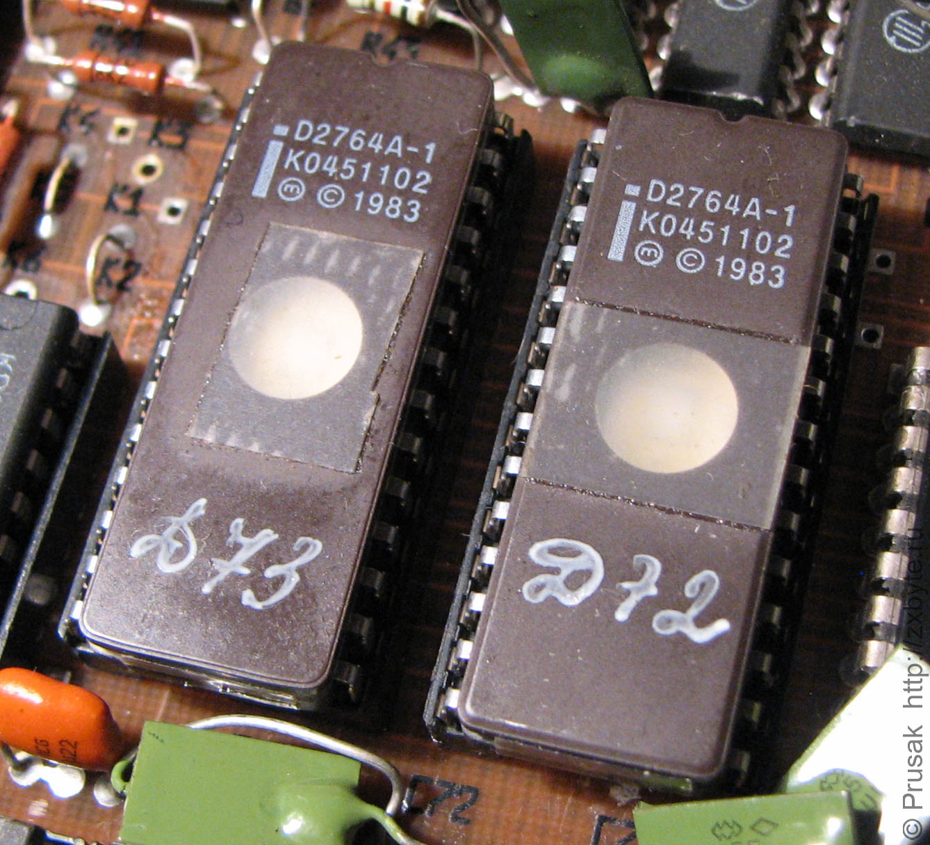 Все ПЗУ отмаркированы - на них краской написаны их порядковые номера по схеме, чтобы не спутать микросхемы при установке на плату.