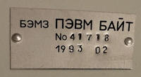 | 1995.12 | 63478Возможно перебита дата. Компьютер с этим номером не мог быть произведен в декабре 1996 года - в это время Байты не выпускались и уже исчезли из продажи в магазинах. | | |