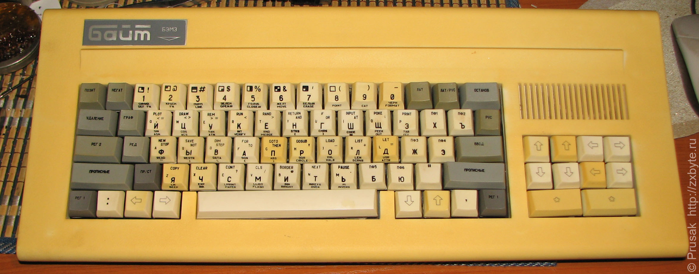 Компьютер «Байт» с пожелтевшей пластмассой корпуса