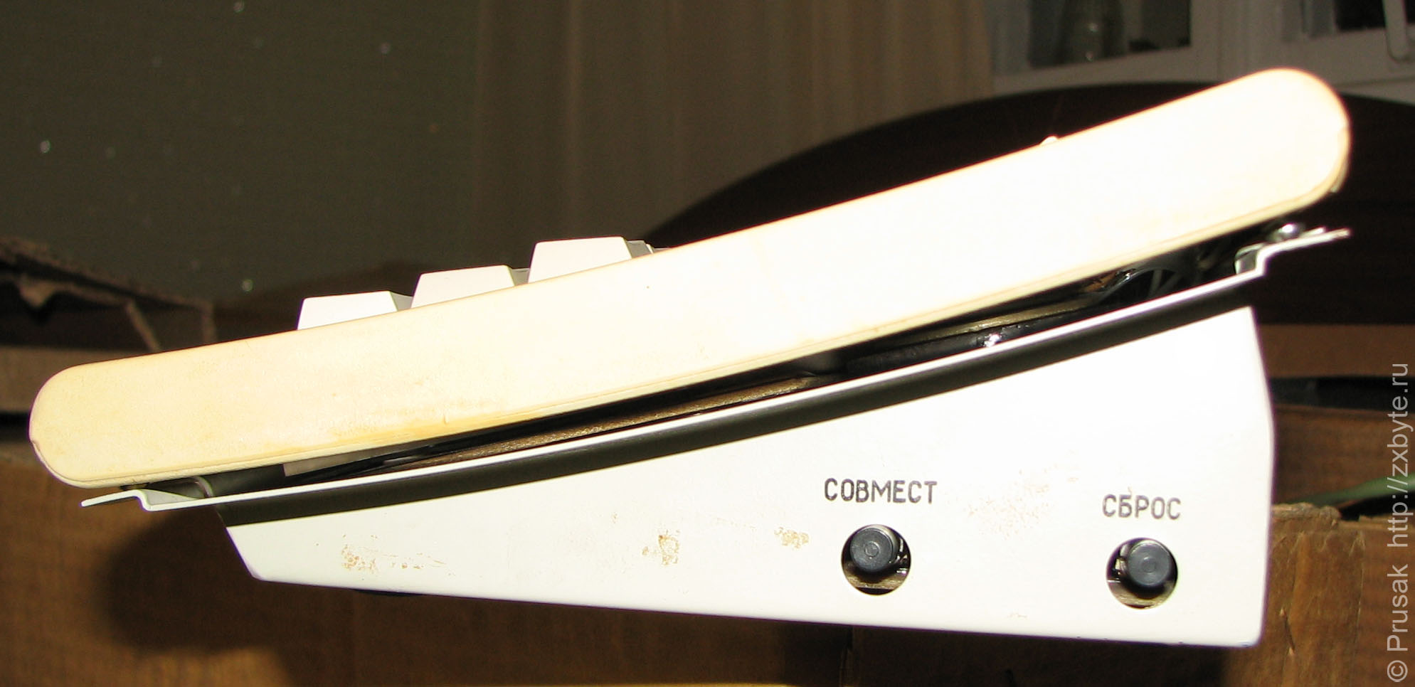 На правой стенке располагается кнопка сброса и кнопка включения совместимости с обычным ZX-Spectrum: