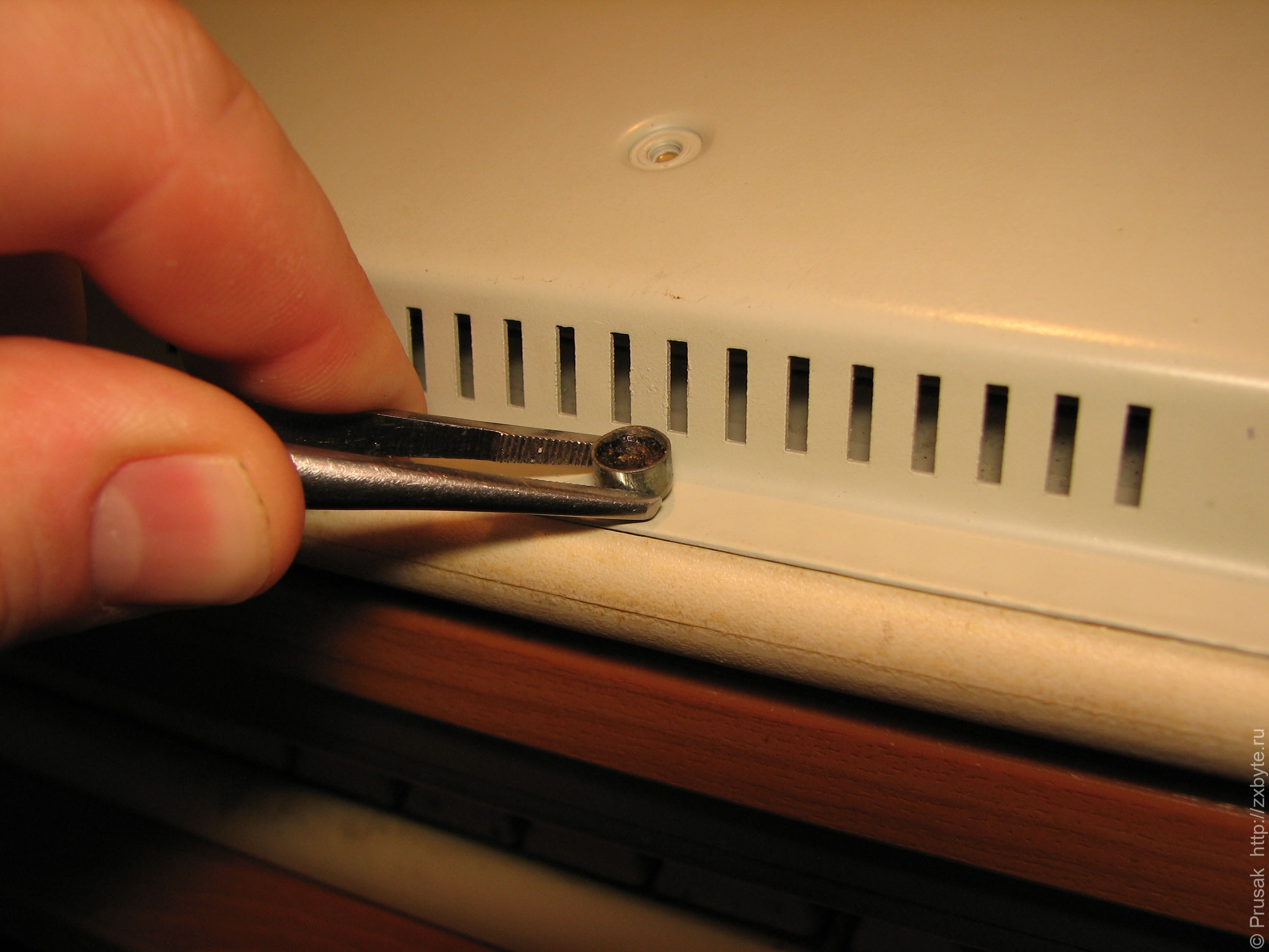 Изредка удавалось разобрать компьютер не нарушая пломбы. Для этого пинцетом или плоскогубцами надо было поворачивать пломбировочную чашку против часовой стрелки. Битумная мастика, которая использовалась для пломбирования, давала хорошее сцепление между головкой самореза и пломбировочной чашкой, в результате чего пломбировочная чашка могла крутиться вместе с саморезом.