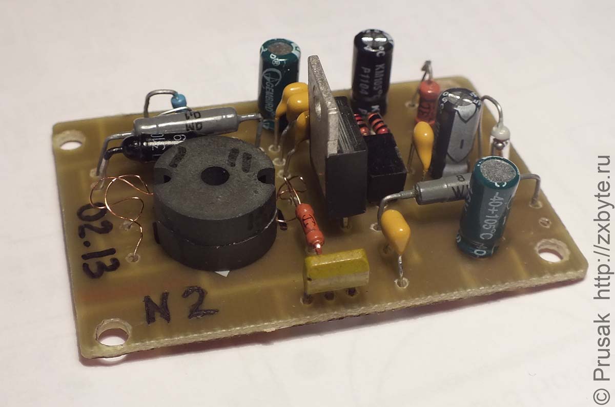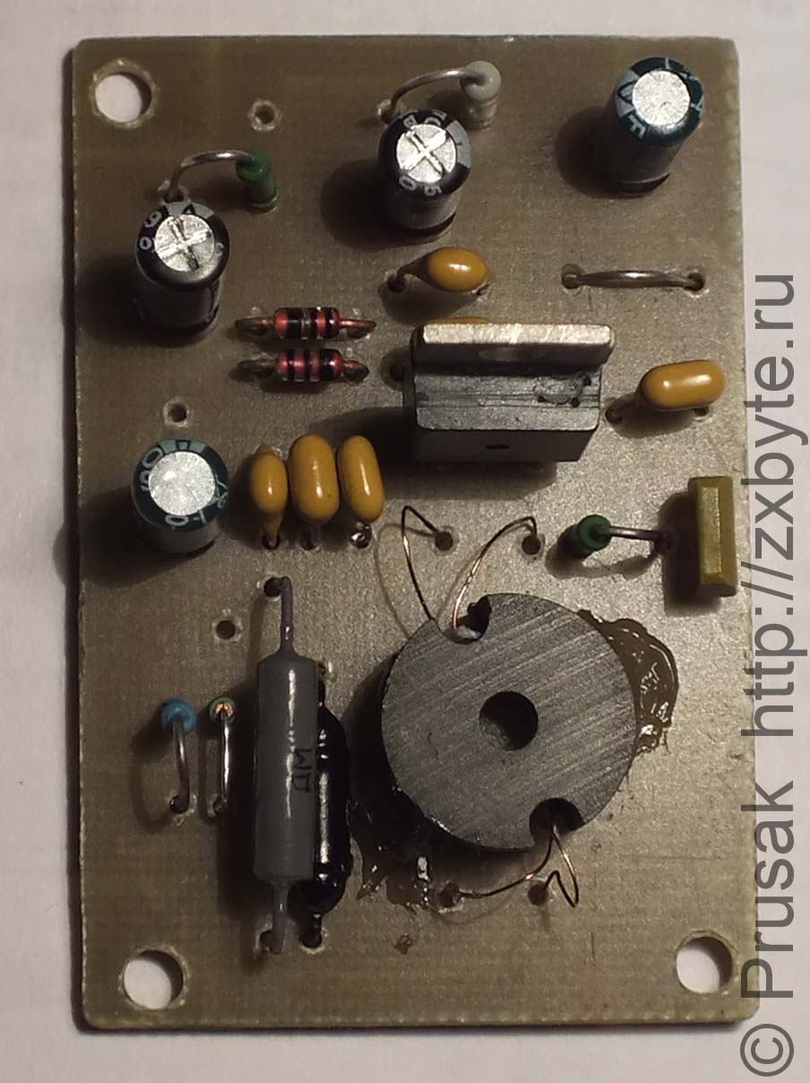 На практике один из собранных преобразователей был встроен в источник питания +5В, собраный в корпусе от источника питания "Электроника МС9011.02" для питания компьютера "Микроша":
