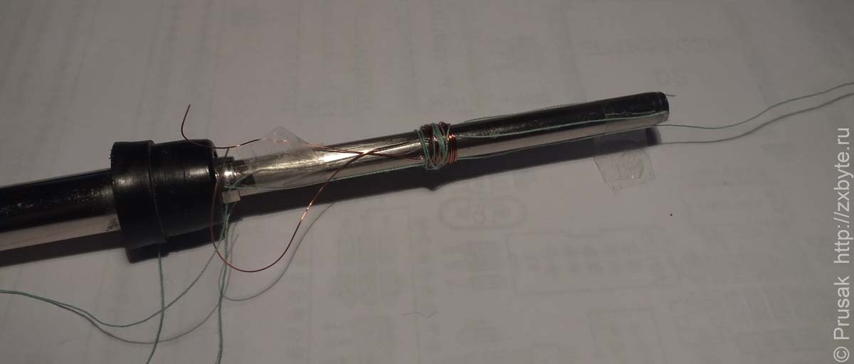 Мне достались сердечники без каркаса для катушки, поэтому для намотки катушек придётся немного постараться. Для начала необходимо подыскать круглую оправку диаметром не менее 6,5мм. В качестве оправки у меня идеально подошла старая телескопическая антенна от радиоприёмника - у одного из её звеньев оказался диаметр 6,7мм.