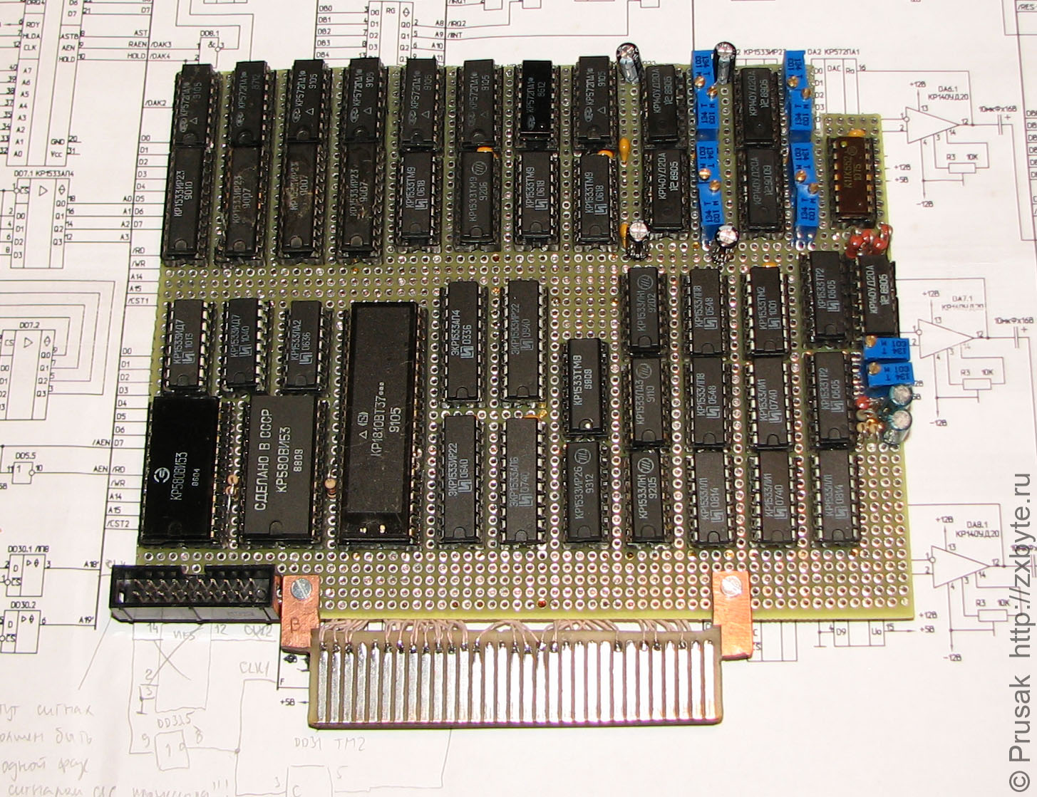 Несмотря на то, что в журнальной статье по DMA USC было написано, что КР580ВИ53 "со скрипом, но выдерживают тактовую частоту 3,5МГЦ", у меня далеко не все экземпляры ВИ53 пожелали нормально работать. Пришлось подбирать нормально работающие на 3,5МГц микросхемы.