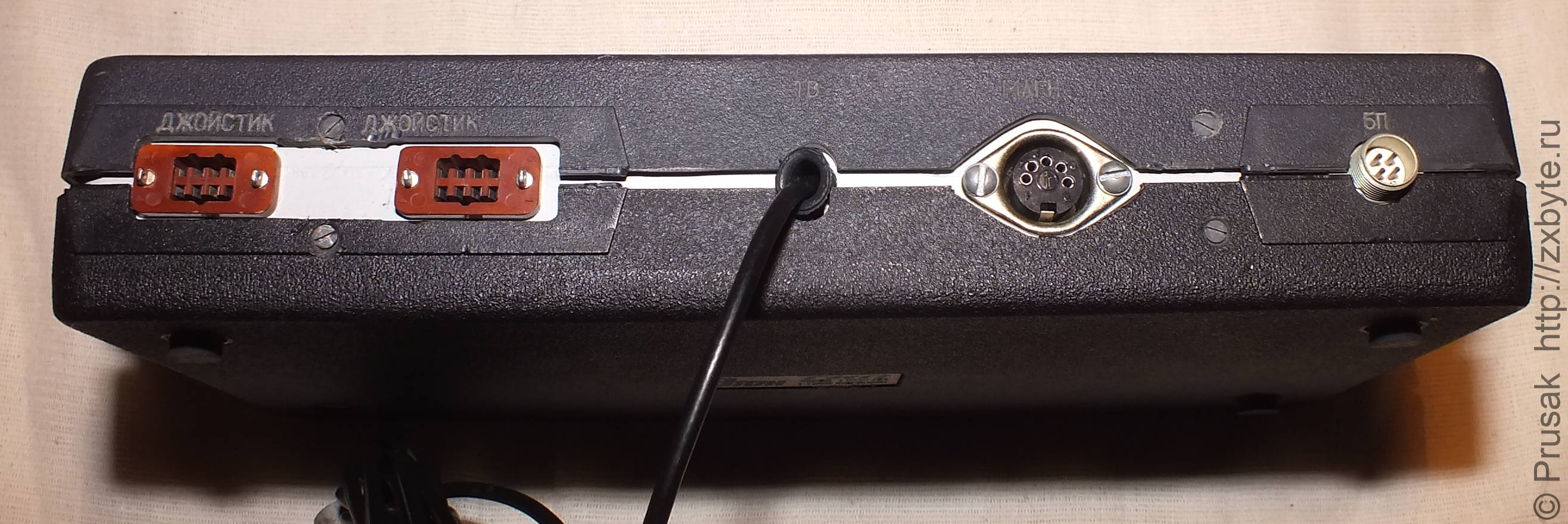 На задней стенке компьютера расположены стандартные разъёмы - для двух джойстиков, магнитофона, источника питания.