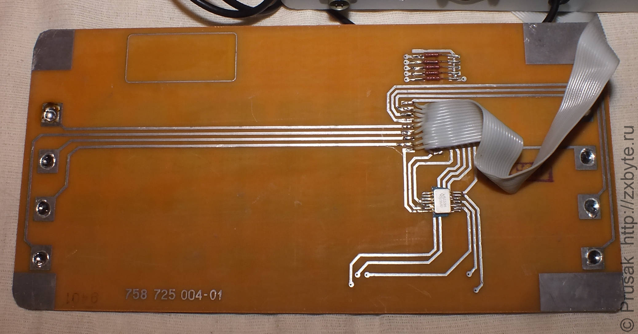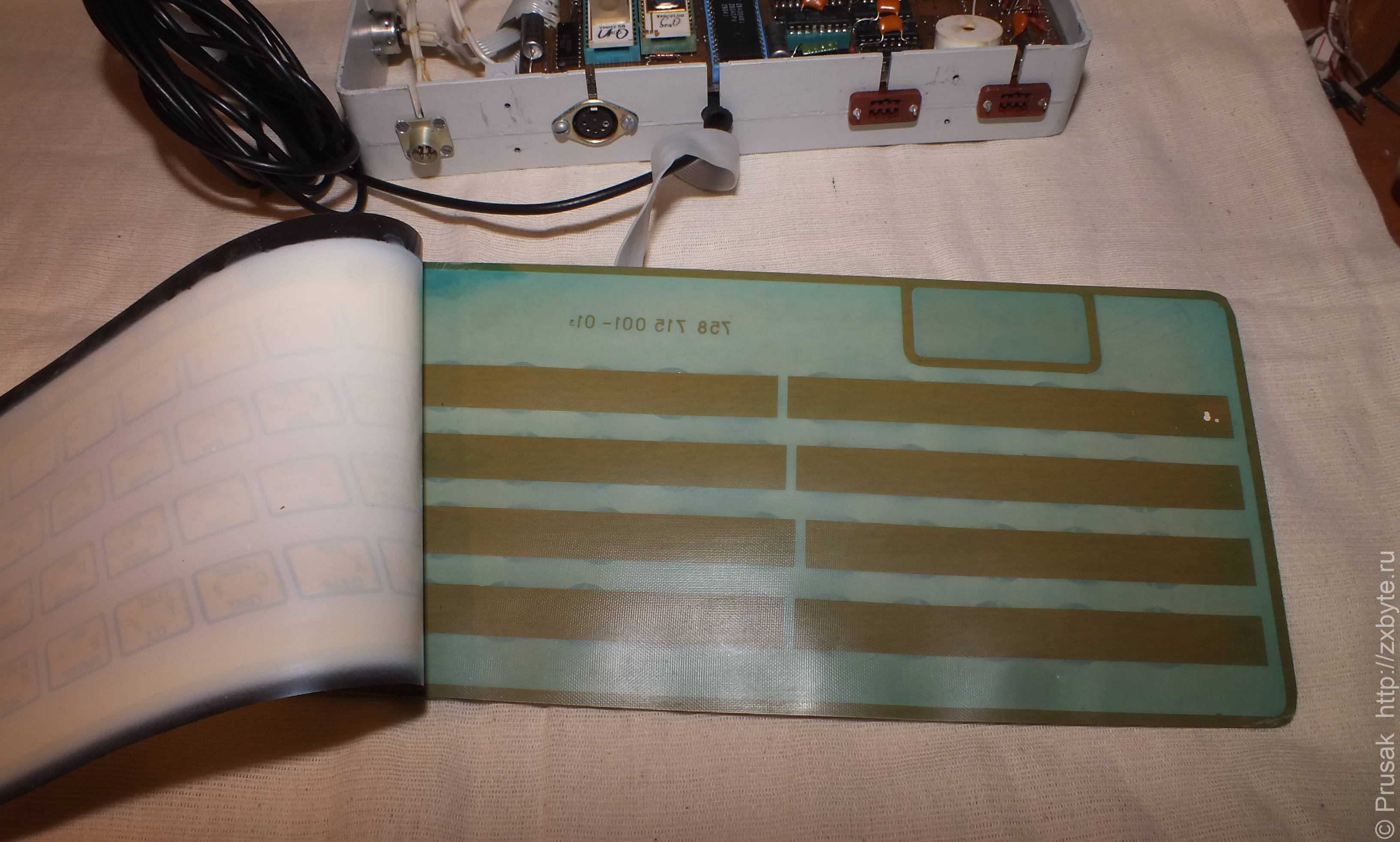Клавиатура плёночная. Для Спектрума такие клавиатуры используются нечасто. Но увы, клавиатура неудобна в работе. Мало того, на ней не нанесены операторы для расширенного режима ввода (INK, PAPER, BEEP и т.п.), поэтому приходится при наборе программы напрягать мозги и вспоминать какой оператор к какой клавише относится.