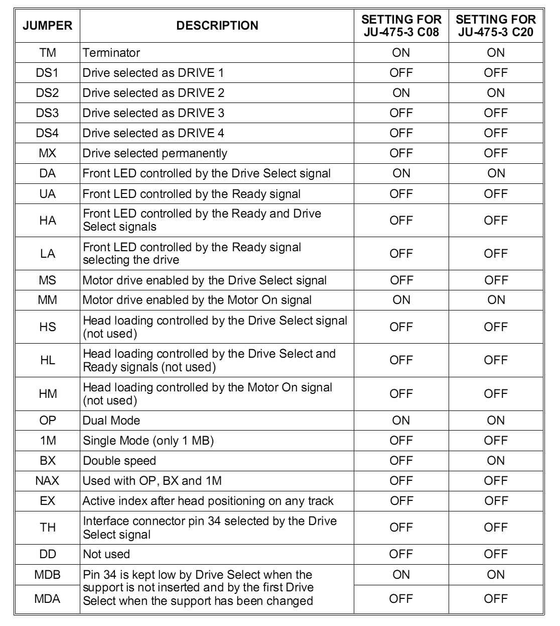 Описание перемычек для некоторых моделей дисководов Toshiba, Panasonic, CanonToshiba ND04DT Toshiba ND08DE Panasonic JU-455-4 Panasonic JU-455-7 Canon MD5501-64 Panasonic JU-475-2 Panasonic JU-475-3 Panasonic JU-475-4 Panasonic JU-475-5 На английском