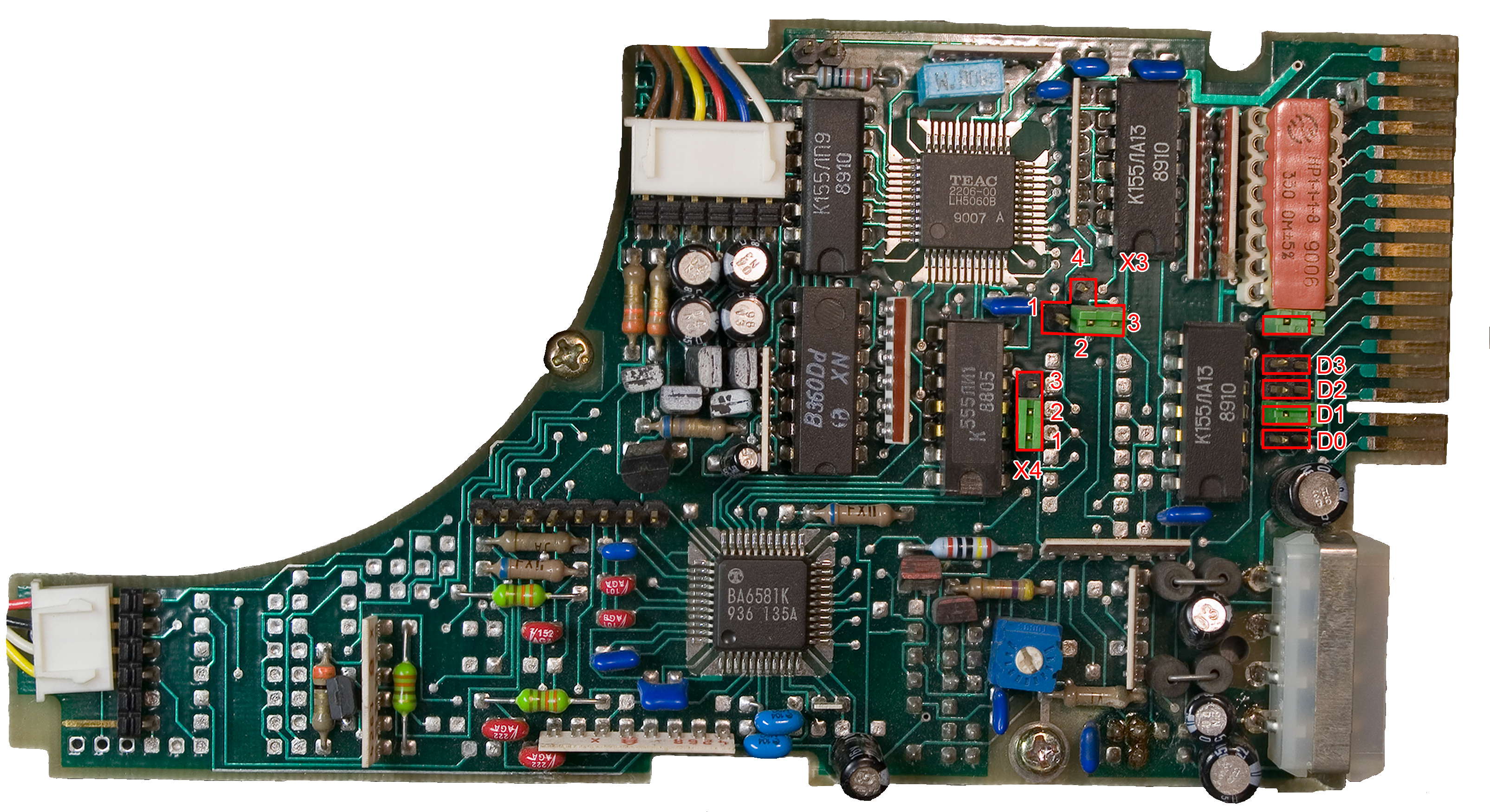 Расположение перемычек на плате контроллера Teac версии 03