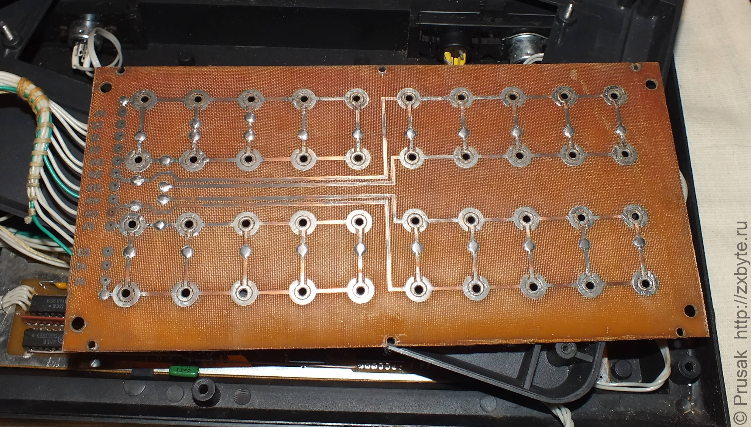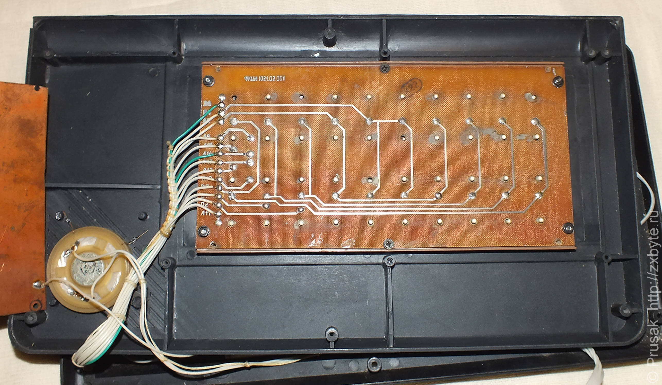 Клавиатура отделена от платы листом фольгированного гетинакса для устранения наводок от платы