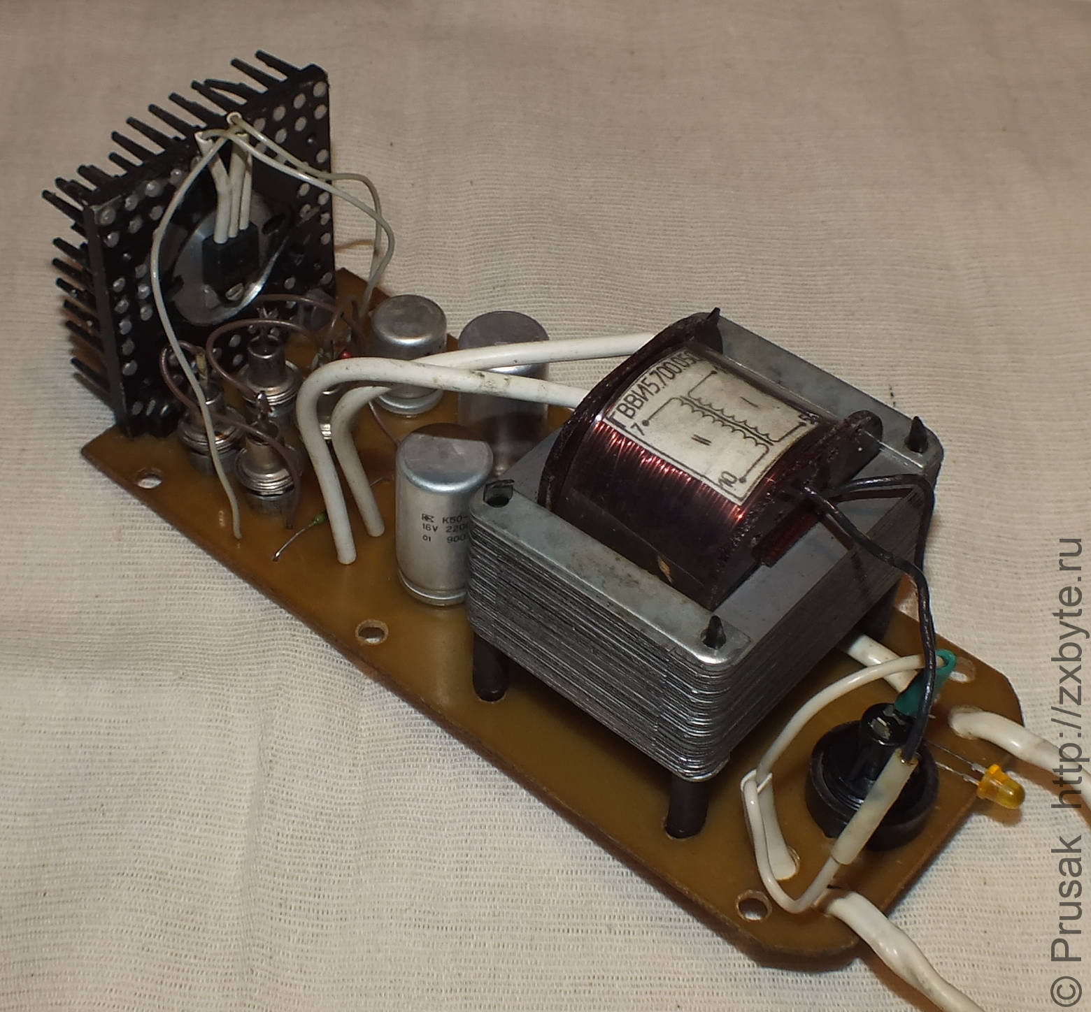 Радиатор, на который установлен стабилизатор напряжения, имеет довольно скромный размер. Для питания самого компьютера такого источника хватает, но для подключения дополнительной периферии, например, контроллера дисковода, его мощности вряд ли хватит.