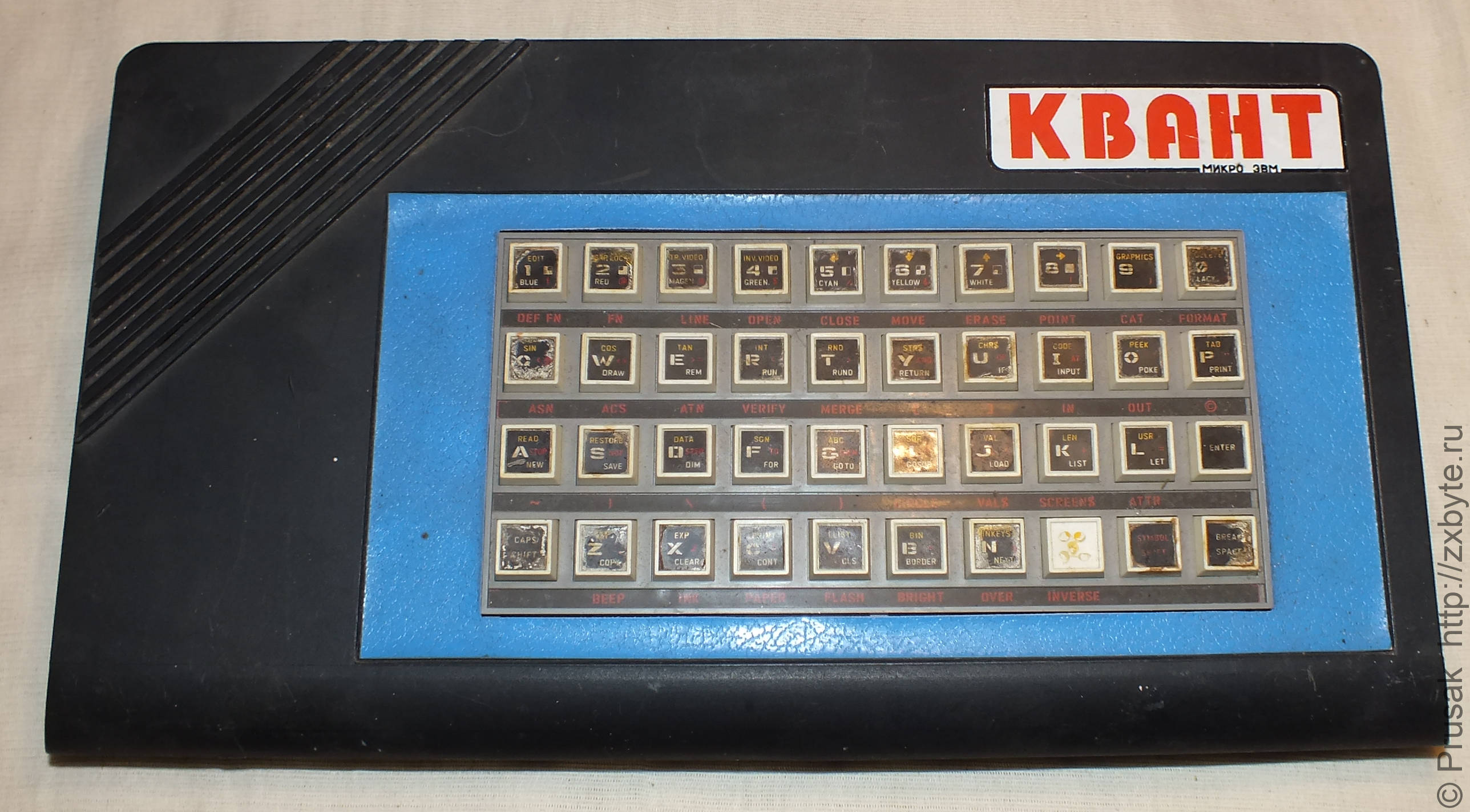 В наших краях (Западная Беларусь) в 90-х годах помимо «Байтов» и «Ленинградов» были широко распространены клоны Спектрума под названием «Квант» и «Интер». Хотя они имеют разные названия, на самом деле это абсолютно одинаковые компьютеры. Вот типичный образчик компьютера «Квант»: