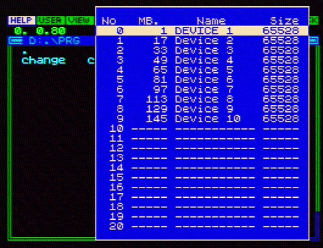 Основная идея доступа к большому количеству дисков состоит в том, что в драйвере винчестера можно "на лету" менять параметры дисков. Т.е. можно для диска D установить параметры Device 0 винчестера, а если надо получить доступ к Device 1 на винчестере, то для того же диска D можно установить соответствующие параметры для Device 1. Точно так же можно переназначить параметры для любого другого логического устройства системы, лишь бы оно было "забито" за винчестером. Недостаток такого метода - одновременно будет видно столько устройств, сколько выделено для использования винчестера. В нашем случае - 5 устройств.
