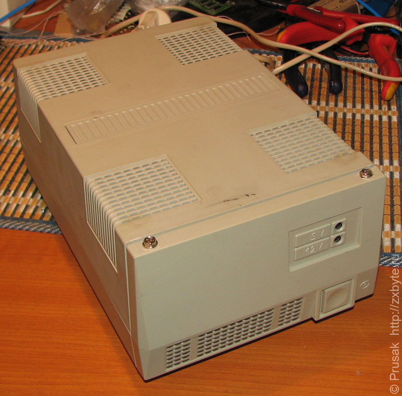 Источник питания внешний, вырабатывает напряжения +5В и +12В. В силу своих параметров идеально подходит для питания ZX-Spectrum с дисководом.