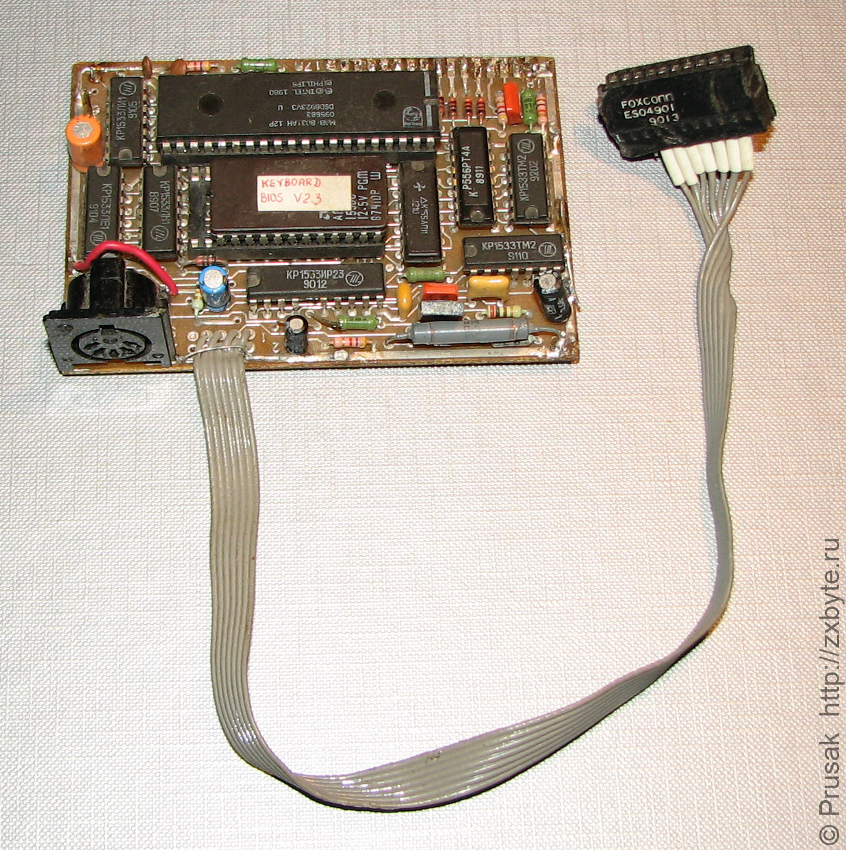 Плёночная клавиатура была хоть и хорошей, но неудобной для быстрой печати. А быстрая печать нужна была для быстрого набора текстов в iS-Assembler, который я тогда только начинал осваивать. Самой удобной для работы мне показалась PC-шная клавиатура, и поэтому по случаю удалось приобрести контроллер AT-клавиатуры и COM-мыши: