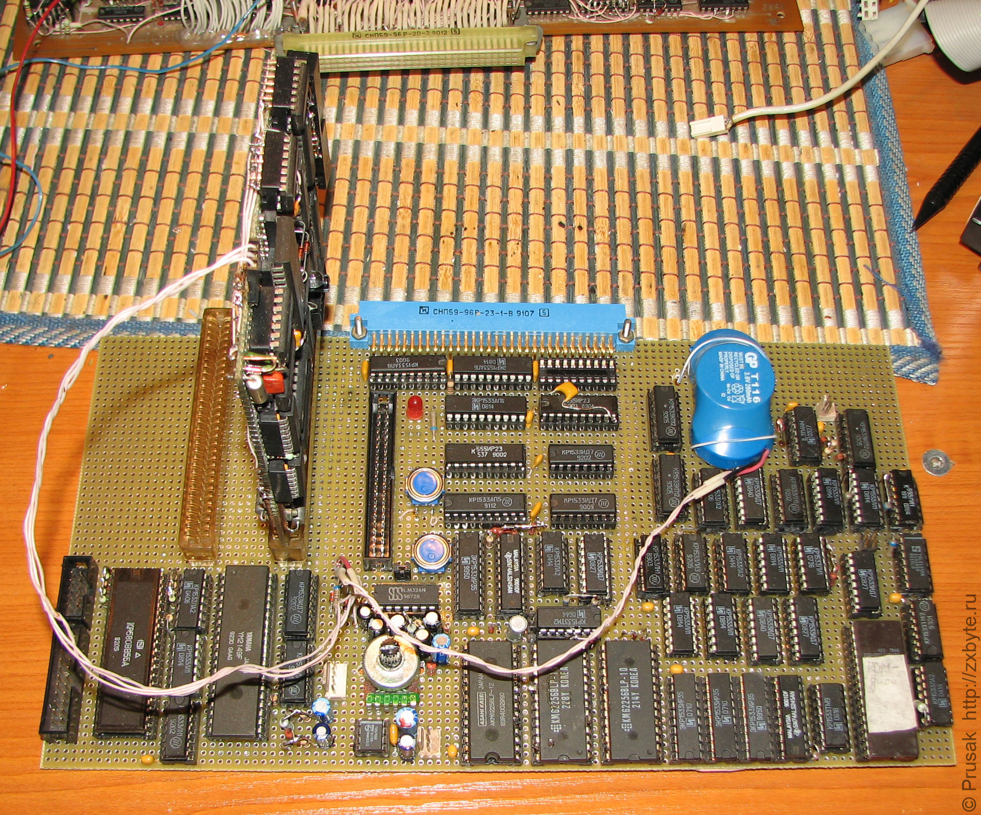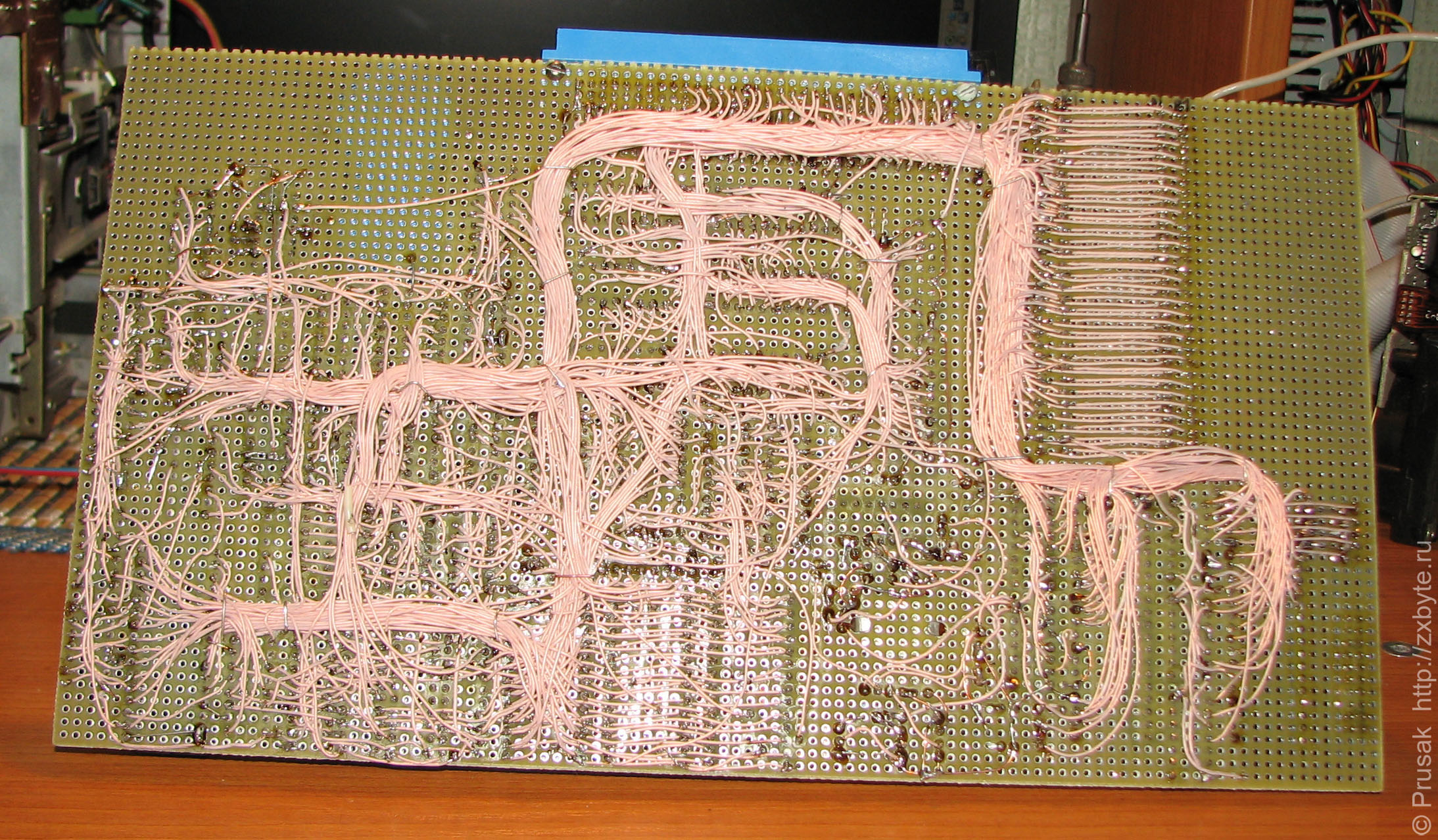 ...Шло время, и Пентагон стал понемногу глючить. Холодные пайки на плате, многочисленные перепайки, стали появляться трещины в дорожках. А посколько компьютер был буквально оплетён МГТФом, то ремонтировать его с каждым разом было всё сложнее. И наконец в один прекрасный день компьютер перестал работать. Навсегда.. Плату пришлось распаять.