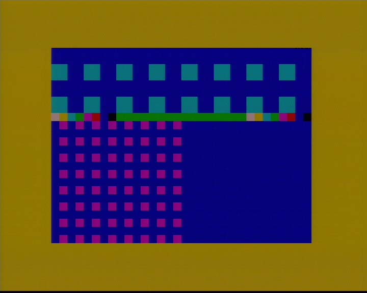 По разноцветному полю можно оценить правильность работы видеоконтроллера по выводу цветов нормальной яркости, повышенной яркости, о наличии мерцания.