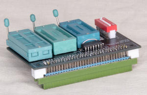 Самым "безболезненным" для компьютера является подключение в системный разъём специально изготовленной платы, куда в свою очередь устанавливается внешнее ПЗУ с тестом памяти, например.